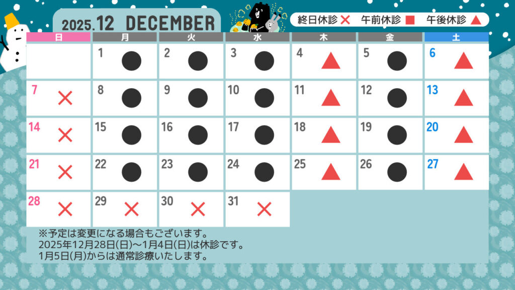診療カレンダー12月