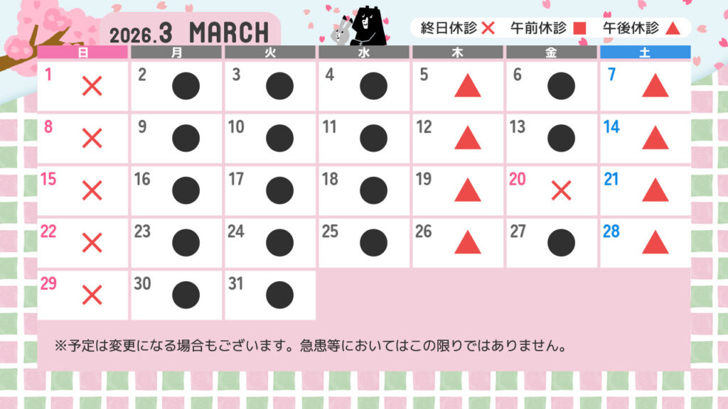 診療カレンダー3月
